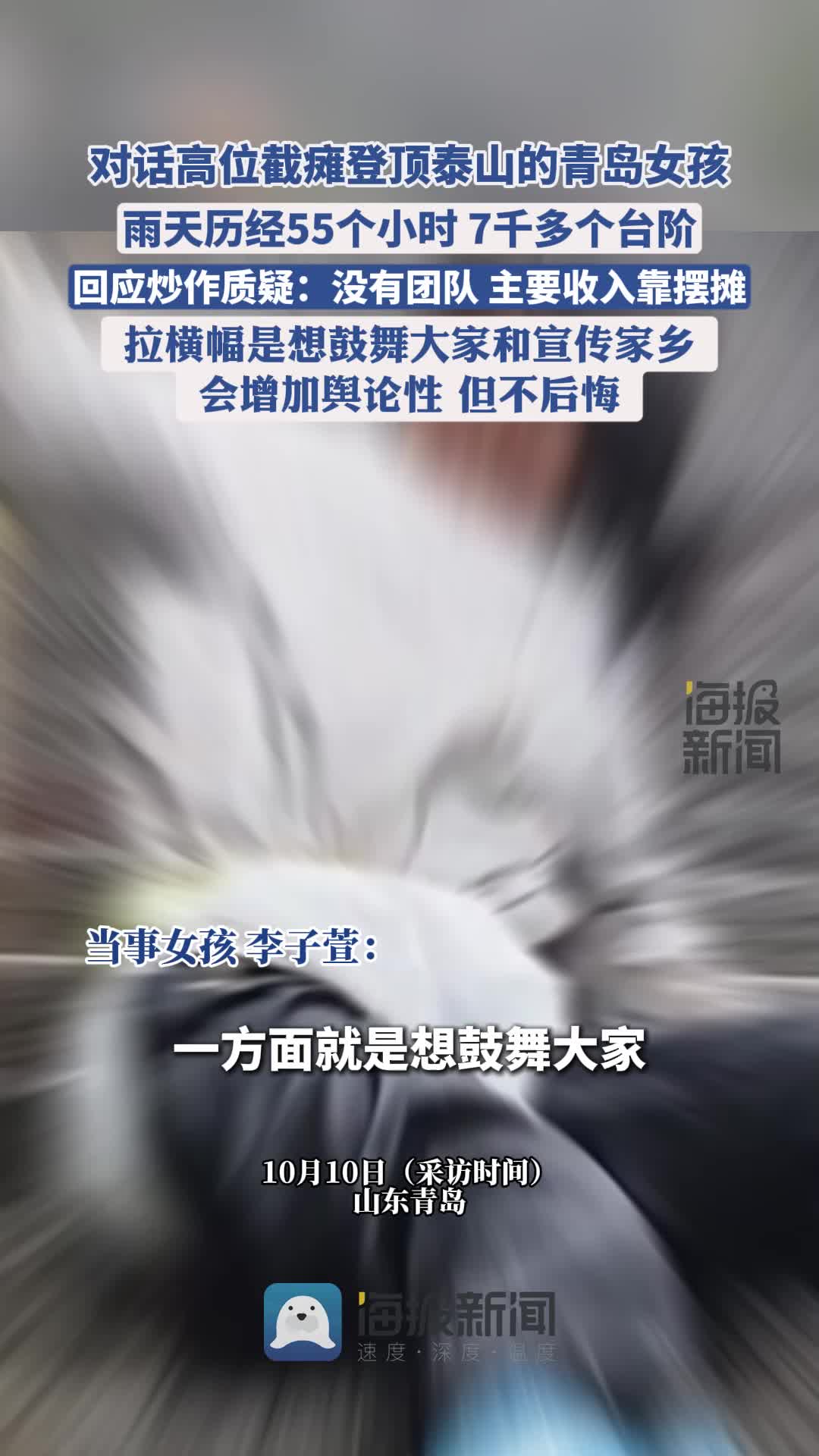 • 高位截癱登頂泰山的青島女孩回應炒作質疑:沒有團隊 只想鼓勵更多人和宣傳家鄉