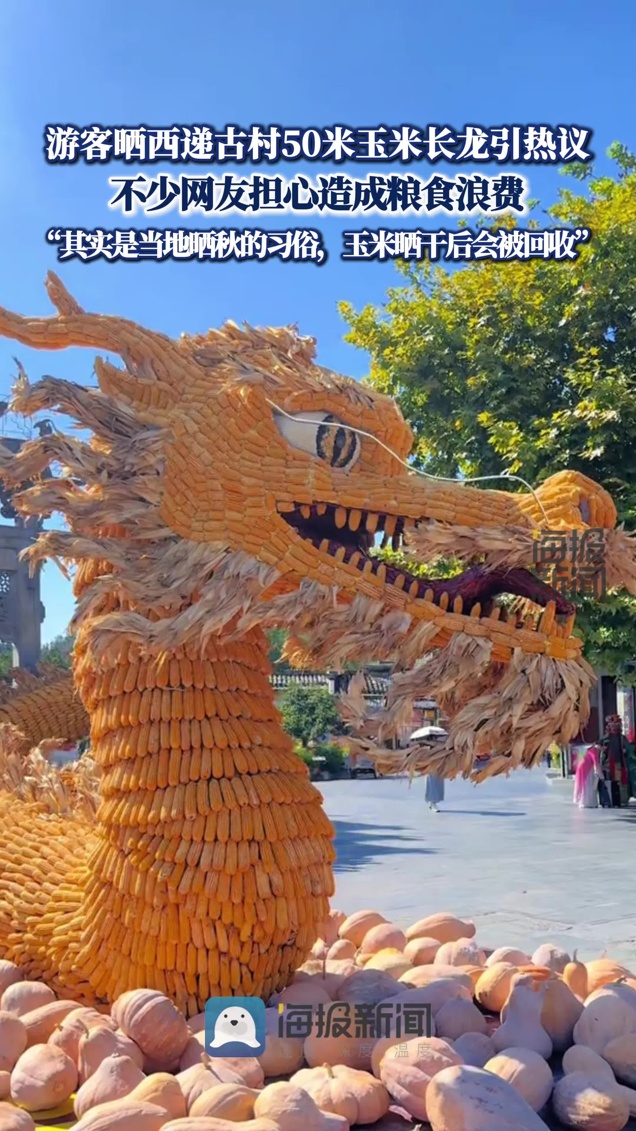 • 游客曬西遞古村50米玉米長龍引熱議:不會造成糧食浪費,這是當地曬秋的習俗