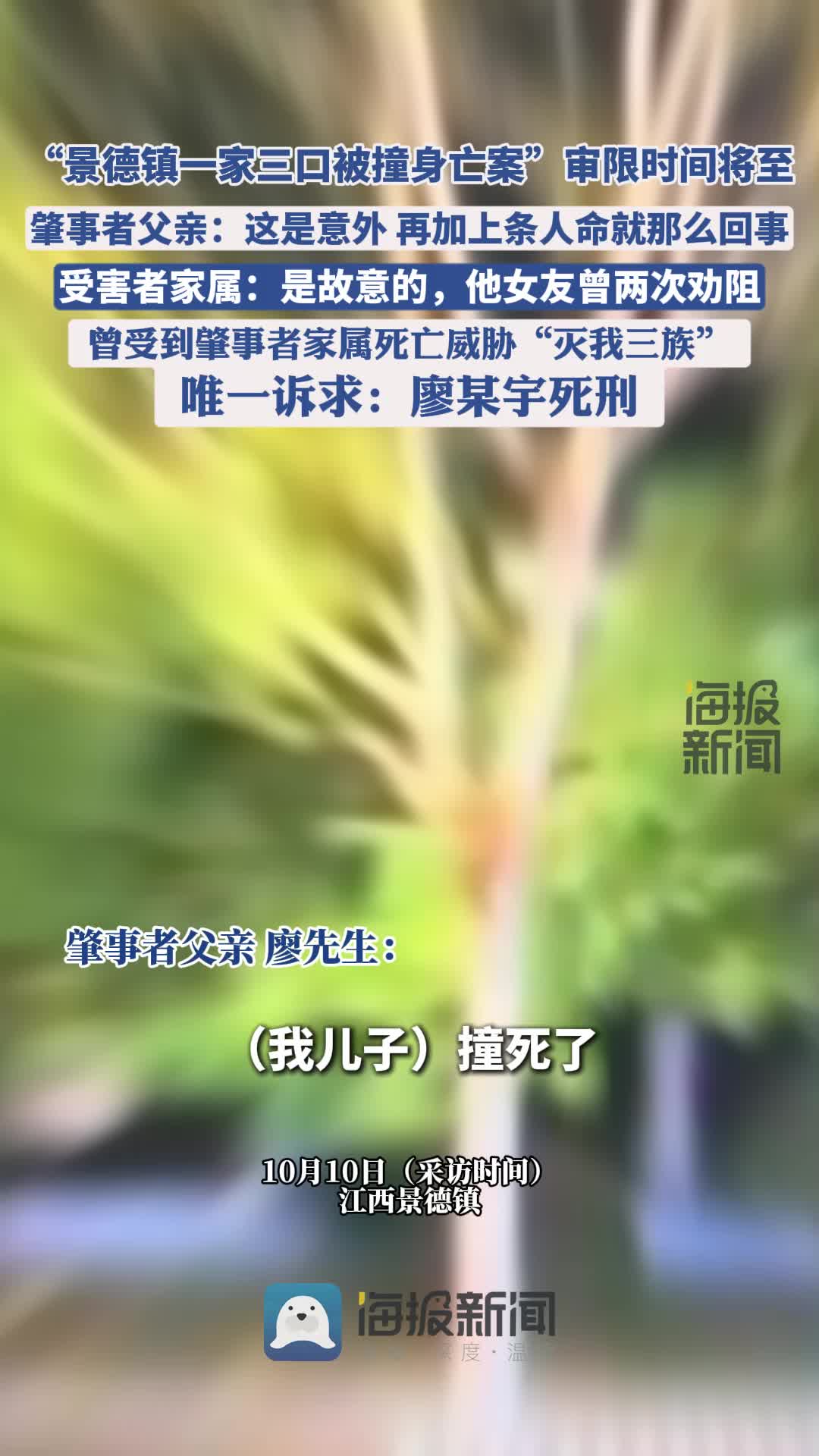 • 景德鎮一家三口被撞身亡案審限時間將至,受害者家屬:不是意外,他女友曾兩次勸阻